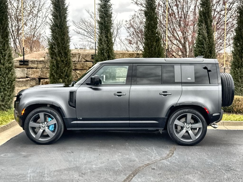 Land Rover Certified! CARFAX One-Owner. Clean CARFAX. Odometer is 32215 miles below market average! Carpathian Gray Premium Metallic 2022 Land Rover Defender 110 Carpathian Edition 4WD 8-Speed Automatic 5.0L V8 Both set of Key Fobs, Bought here serviced here, Non Smoker Car, 11.4" Touchscreen, ABS brakes, Active Cruise Control, Adaptive suspension, Alloy wheels, Apple CarPlay & Android Auto, Auto High-beam Headlights, Automatic temperature control, Compass, Electronic Stability Control, Front dual zone A/C, Fully automatic headlights, Garage door transmitter: HomeLink, Heads-Up Display, Heated door mirrors, Heated front seats, Heated rear seats, Heated steering wheel, Illuminated entry, Low tire pressure warning, Navigation System, Power moonroof, Radio: 825W 15 Speaker Meridian Surround Sound Sys, Rain sensing wipers, Remote keyless entry, Traction control, Ventilated front seats, Wheels: 22" Gloss Dark Grey Style 5098, Windsor Leather Seat Trim.