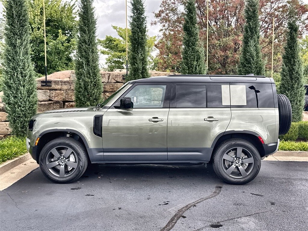 Land Rover Certified! Clean CARFAX. Odometer is 10446 miles below market average! Pangea Green Metallic 2025 Land Rover Defender 110 S AWD 8-Speed Automatic 2.0L I4 DI Turbocharged 12-Way Heated Electric Memory Front Seats, 20" Wheels, Adaptive Dynamics, Air Suspension Pack, Apple CarPlay & Android Auto, Auto High-beam Headlights, Automatic temperature control, Black Contrast Roof, Black Exterior Pack, Cold Climate Package, Electronic Air Suspension, Front dual zone A/C, Fully automatic headlights, Garage door transmitter: HomeLink, Headlight Power Wash, Heated Washer Jets, Heated Windscreen, Navigation system: Connected Navigation PIVI Pro, Radio: Meridian Sound System, Rain sensing wipers, Tow Hitch Receiver, Wheels: 20" Gloss Dark Grey Style 5095.