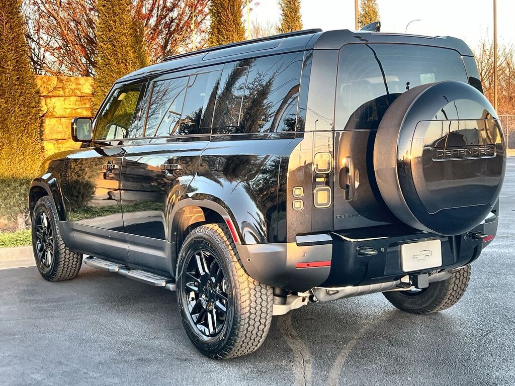Clean CARFAX. Santorini Black Metallic 2026 Land Rover Defender 110 S AWD 8-Speed Automatic 2.0L I4 DI Turbocharged 12-Way Heated Electric Memory Front Seats, 3-Zone Climate Control, 40:20:40 Folding Heated Rear Seats with Center Armrest, Adaptive Dynamics, Air Suspension Pack, AM/FM radio: SiriusXM, Apple CarPlay & Android Auto, Auto High-beam Headlights, Automatic temperature control, Black Exterior Pack, Black Fixed Side Steps, Cabin Air Purification Plus, ClearSight Interior Rear View Mirror, Cold Climate Package, Electronic Air Suspension, Front dual zone A/C, Front fog lights, Fully automatic headlights, Headlight Power Wash, Heated steering wheel, Heated Windscreen, Navigation system: Connected Navigation PIVI Pro, Power moonroof, Radio: Meridian Sound System, Speed-Sensitive Wipers, Tow Hitch Receiver, Wheels: 19" Gloss Black Style 6010.