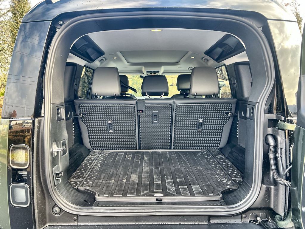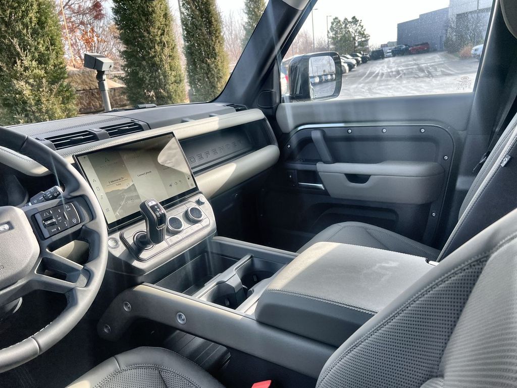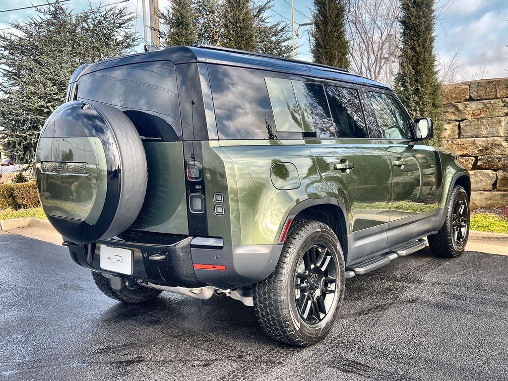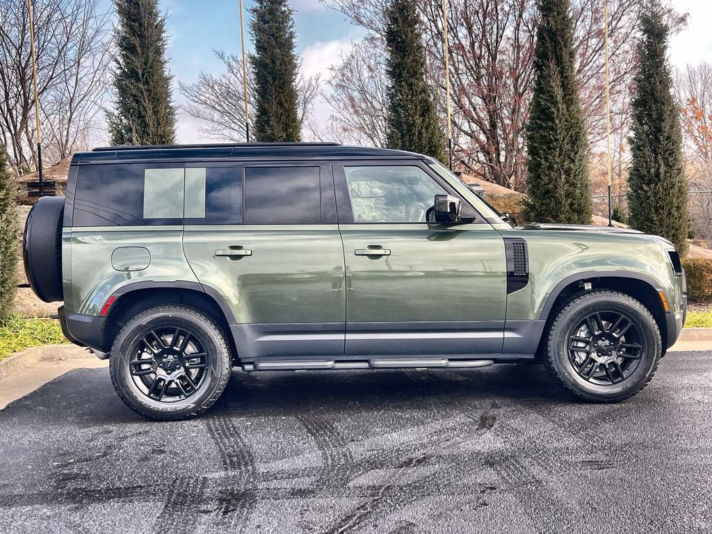Clean CARFAX. Woolstone Green Metallic 2026 Land Rover Defender 110 S AWD 8-Speed Automatic 2.0L I4 DI Turbocharged 12-Way Heated Electric Memory Front Seats, 3-Zone Climate Control, 40:20:40 Folding Heated Rear Seats with Center Armrest, Adaptive Dynamics, Air Suspension Pack, AM/FM radio: SiriusXM, Apple CarPlay & Android Auto, Auto High-beam Headlights, Black Contrast Roof, Black Exterior Pack, Black Fixed Side Steps, Cabin Air Purification Plus, ClearSight Interior Rear View Mirror, Cold Climate Package, Electronic Air Suspension, Front dual zone A/C, Front fog lights, Garage door transmitter: HomeLink, Headlight Power Wash, Heated steering wheel, Heated Windscreen, Navigation system: Connected Navigation PIVI Pro, Power moonroof, Radio: Meridian Sound System, Rain sensing wipers, Speed-Sensitive Wipers, Tow Hitch Receiver, Wheels: 19" Gloss Black Style 6010.