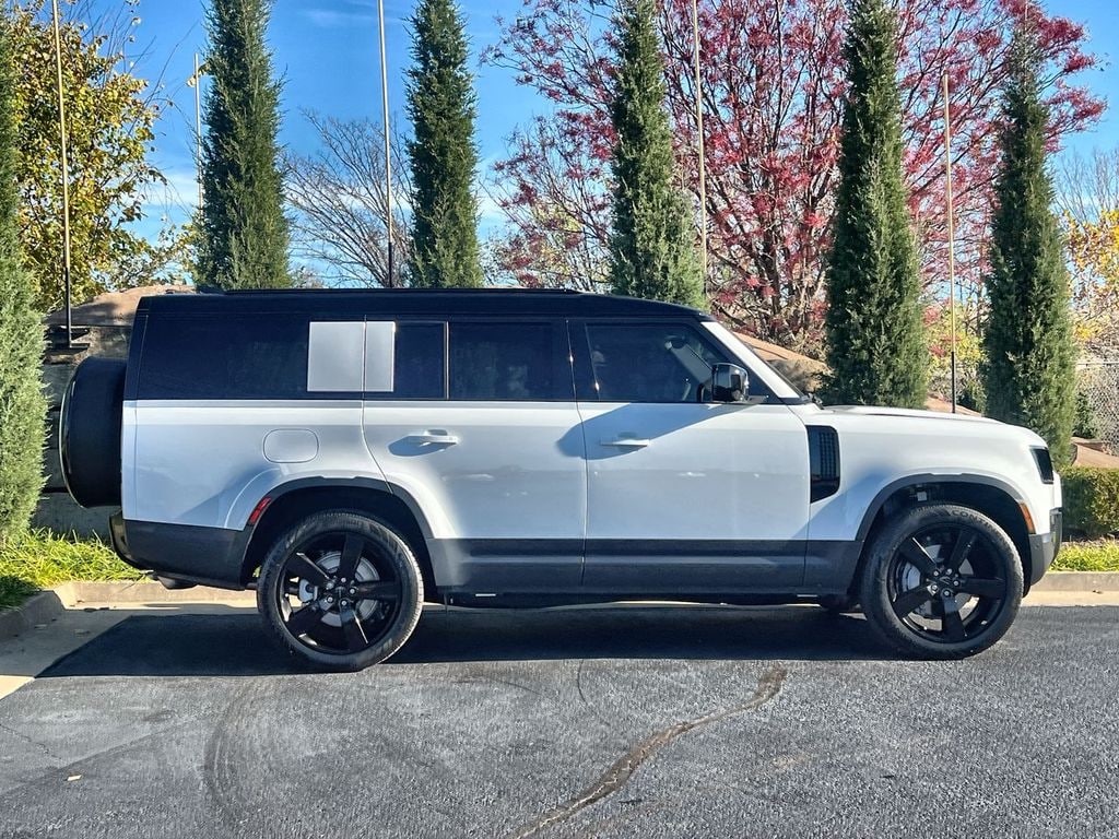 Clean CARFAX. Fuji White 2026 Land Rover Defender 130 S AWD 8-Speed Automatic 3.0L I6 12-Way Heated & Cooled Electric Memory Front Seats, 2nd Row Heated & Cooled Captain Chairs, 3rd row seats: split-bench, Adaptive suspension, Advanced Tow Assist, Air Conditioning, All Terrain Progress Control (ATPC), AM/FM radio: SiriusXM, Apple CarPlay & Android Auto, Auto High-beam Headlights, Black Contrast Roof, Black Exterior Pack, Cold Climate Package, Configurable Terrain Response, Front dual zone A/C, Front fog lights, Fully automatic headlights, Garage door transmitter: HomeLink, Headlight Power Wash, Heated 3rd Row Seats, Heated steering wheel, Heated Windscreen, Navigation system: Connected Navigation PIVI Pro, Power moonroof, Radio: Meridian Sound System, Rain sensing wipers, Rear air conditioning, Speed-Sensitive Wipers, Terrain Response 2, Tow Hitch Receiver, Towing Pack, Wheels: 22" Gloss Black Style 5098.